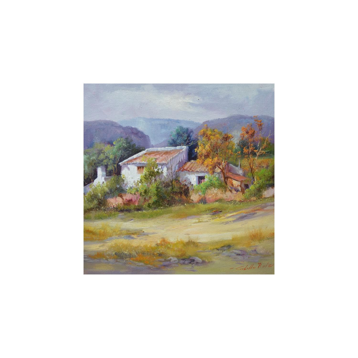 The contemporary artwork Casa del pastor is a modern painting from the artist Jose Cabello Ruiz. This is a contemporary painting, unique and originale, Landscape style.