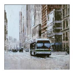 This unique and original contemporary artwork "Le bus du matin" on the subject of Urban has been created by the contemporary artist Poumès Jérôme.