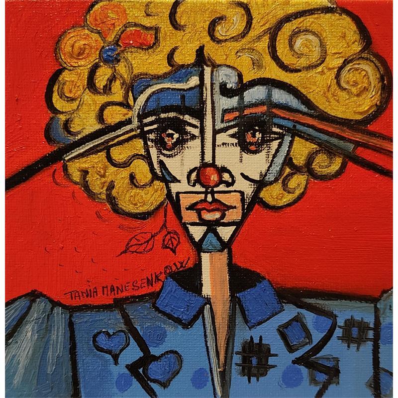 This unique and original contemporary artwork "Mademoiselle Clown" on the subject of Portrait has been created by the contemporary artist Manesenkow Tania.