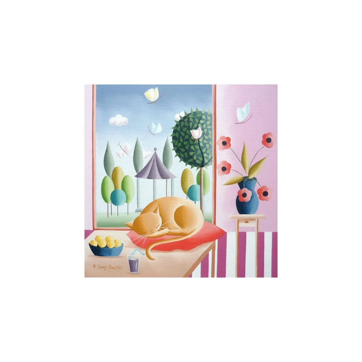 Elizabeth's favourite toys during her childhood in Beaupréau (Maine-et-Loire) were her brushes, palettes and tubes of gouache. She was passionate about art and creativity. As an adult she settled down in Paris and for a time focused on her family life and her job as head of communications. But at the age of 34, she returned to her passion and began to paint in parallel. This hobby quickly became a necessity and four years later Elisabeth decided to devote herself exclusively to this vocation. A desire for colour, imagination, poetry and innocence emerged in her life and painting became the key to a gay and fantastic world