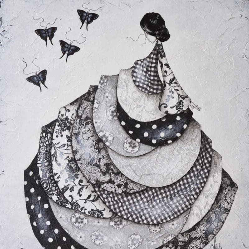 Both as a child and an adolescent, Delphine developed a taste for drawing and the arts (sculpture). At school she excelled in art and received many prizes for drawing, finally choosing to study for a degree in literature along with her Fine Arts studies. She began teaching drawing technique at workshops for children where she observed the creative energy of youth and began using different materials. Having wanted to establish herself as an artist for a long time, this experience led her to quit teaching to devote herself fully to her own work. Recently honoured by Chinese art lovers, the doors of the contemporary art market in Asia are now open to her.