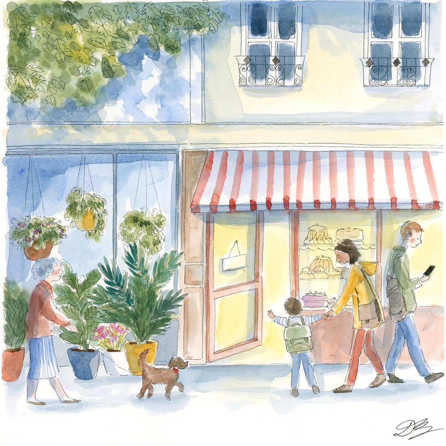 Dans ma ruePintura Dans ma rue por Balme Delphine | Pintura Naive art Urban Life style Watercolor