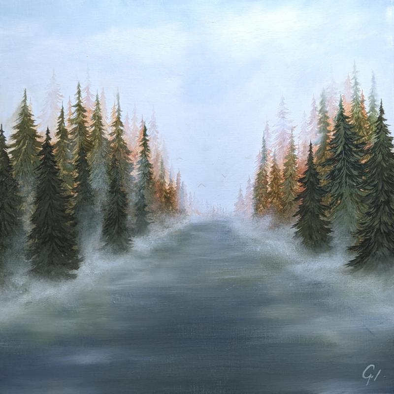 This unique and original contemporary artwork "Autumn on the Road" was created by contemporary artist Pressac Clémence.