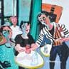 Discover the colored figurative work of the artist Christine Doucedame who paints joyful everyday life scenes with acrylic.