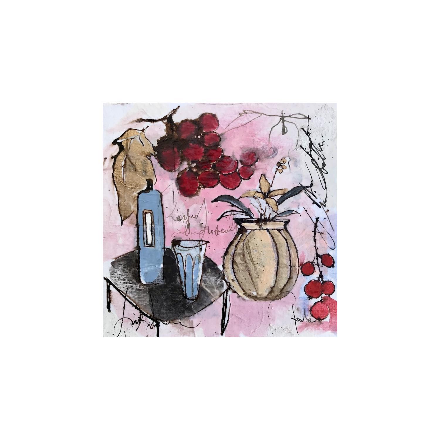 This unique and original contemporary artwork "Fruits rouges" on the subject of Still-life has been created by the contemporary artist Colombo Cécile.