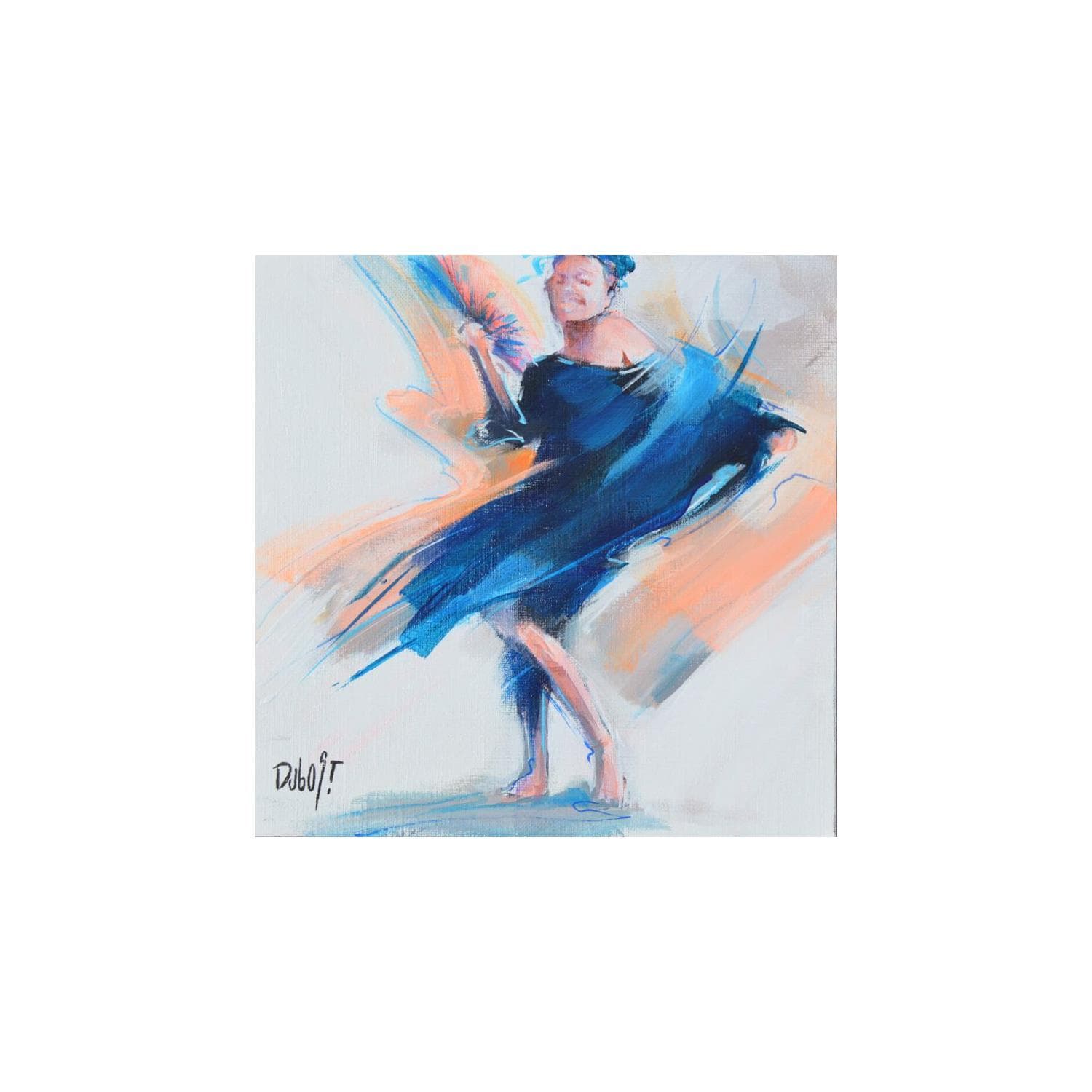 Anne Dubost is an award-winning French artist who enjoys capturing in her paintings people's fragility, determination, sensuality, as well as their transience. To find Anne Dubost's true intention one must read between the lines. The suggestion is indeed at the heart of her process, which spreads colours and textures in order to envelope the subjects with a halo. These circular movements, present in the paintings, lead the artist's characters in a dance that exacerbates the spinning palette, its tonalities and the contrasts packed with energy. A luminous work that contains all the vibrations of the world or, in the words of Régis Broustet, "a palette of spinning colours, much like a bouquet of fireworks".