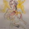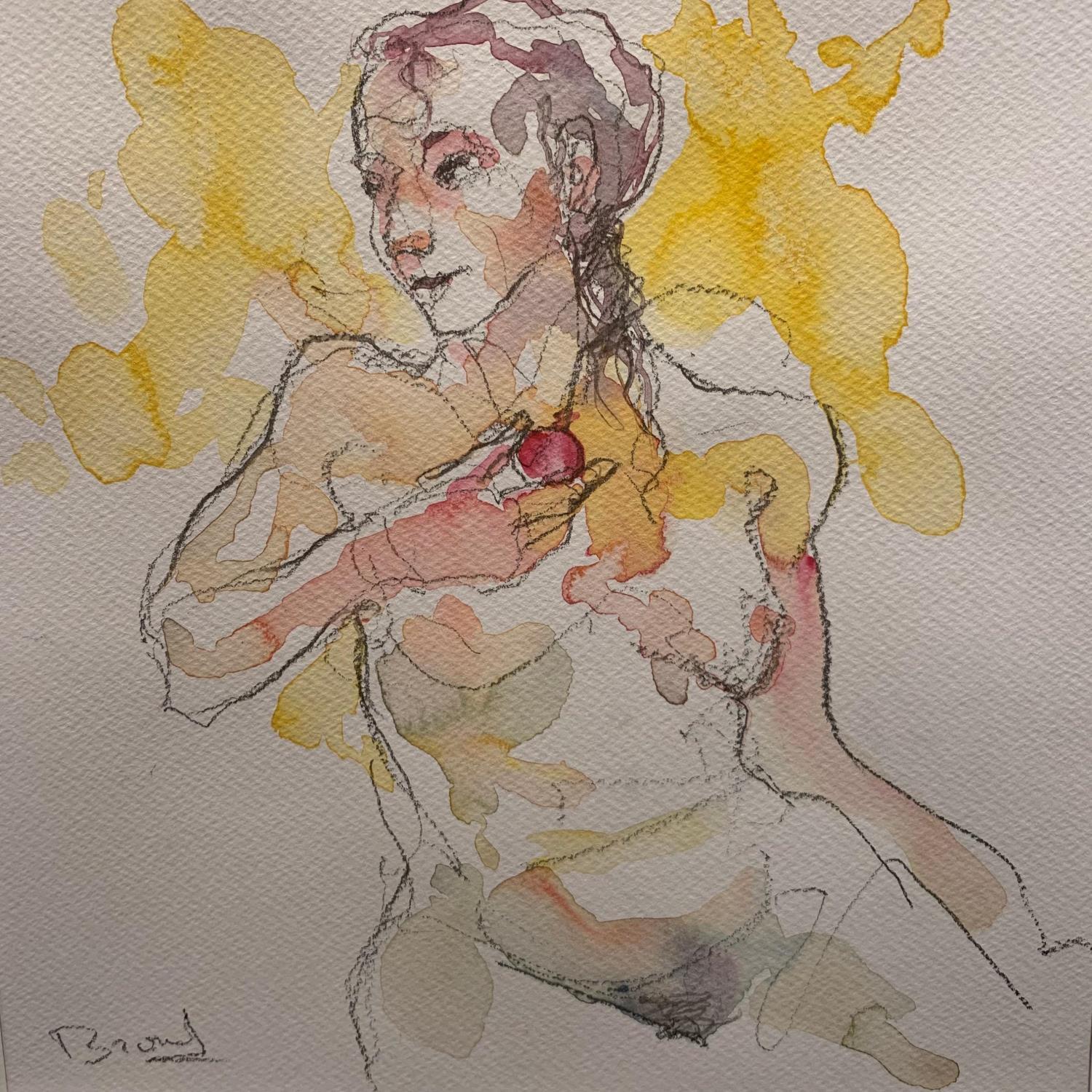Pintura Méline tenant son bijou por Brunel Sébastien | Pintura Figurative Nude Watercolor