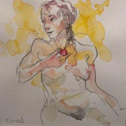 Méline tenant son bijouPintura Méline tenant son bijou por Brunel Sébastien | Pintura Figurative Nude Watercolor