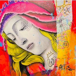 This unique and original contemporary artwork "Love" on the subject of Pop icons has been created by the contemporary artist Molla Nathalie .