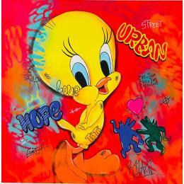 This unique and original contemporary artwork "Titi" on the subject of Pop icons has been created by the contemporary artist Molla Nathalie .