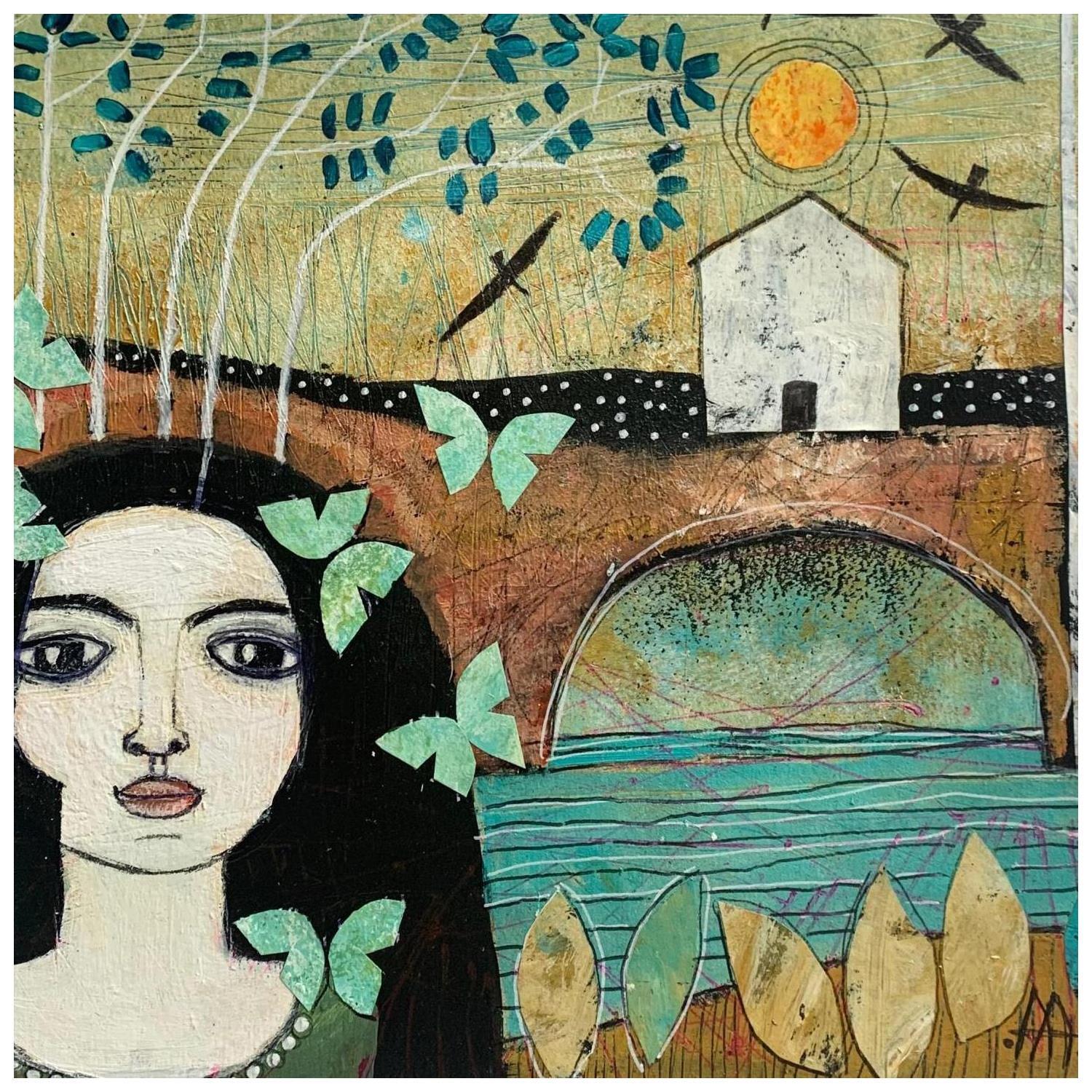 This unique and original contemporary artwork "Mi casa en el puente" on the subjects of Portrait, Landscapes has been created by the contemporary artist Arias Parera Almudena.