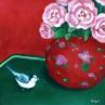 This unique and original contemporary artwork "Bird and peony in a chinoiserie vase" was created by contemporary artist Sally B.