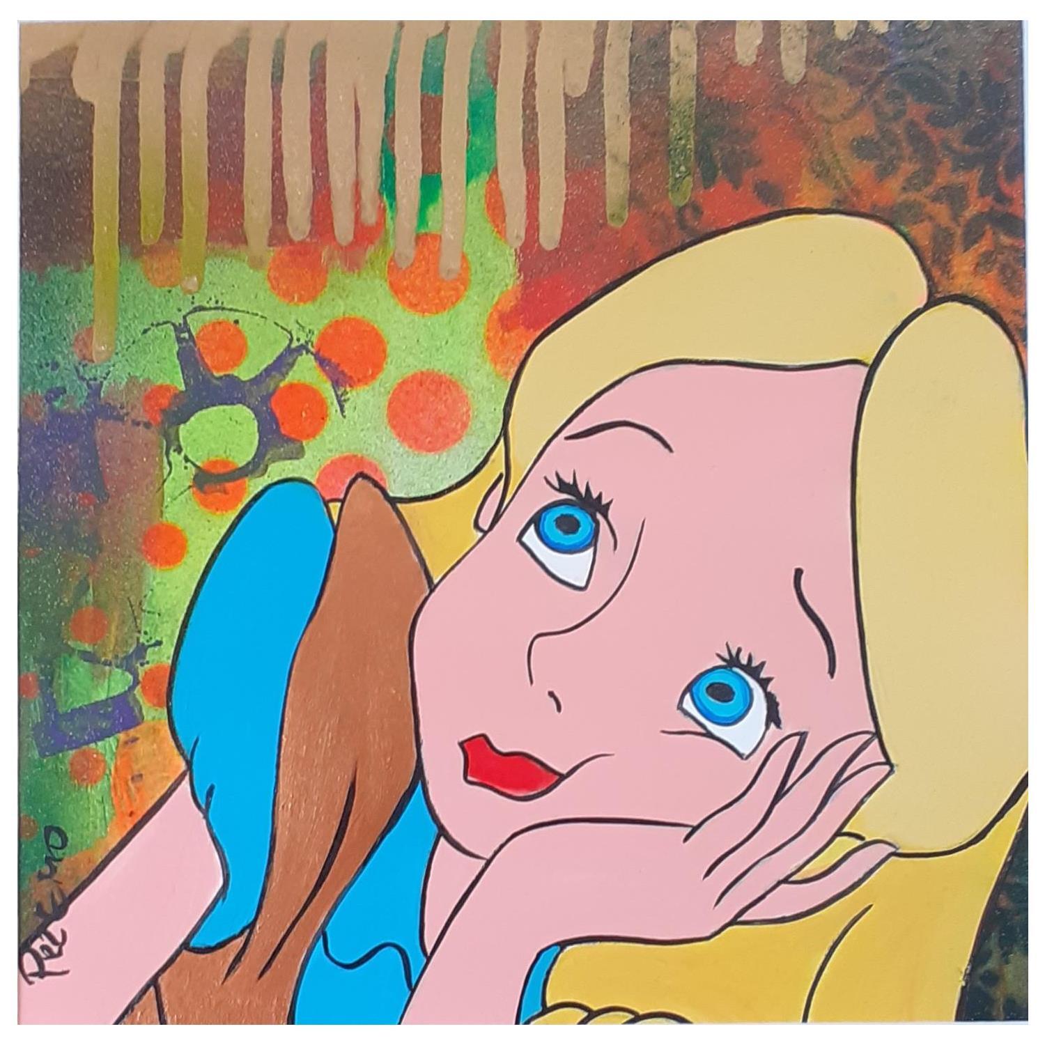 The artist used Acrylic medium on Paper to create this Pop-art, Small size painting.
