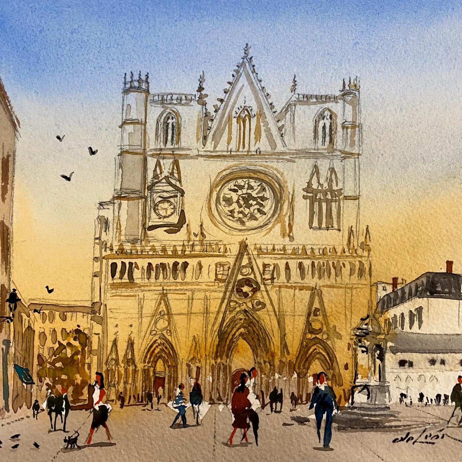 St Jean CathedralPintura St Jean Cathedral por De León Lévi Marcelo | Pintura Figurative Landscapes Urban Watercolor