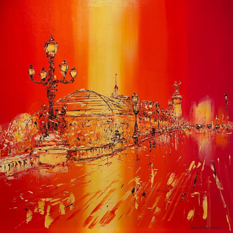 This unique and original contemporary artwork "Balade au crépuscule" on the subject of Urban has been created by the contemporary artist Rousseau Patrick.