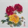 This unique and original contemporary artwork "Trois pivoines" on the subject of still-life has been created by the contemporary artist Tayun.