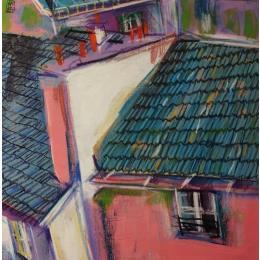 This unique and original contemporary artwork "Derrière la fenêtre nous aimons la nuit" on the subject of Urban has been created by the contemporary artist Anicet Olivier.