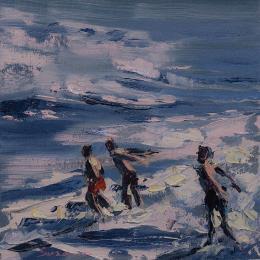 This unique and original contemporary artwork "Children in the water" has been created by contemporary artist Fran Sosa.