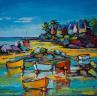 This unique and original contemporary artwork "Barques et rochers à marée basse" on the subjects of Landscapes, Marine has been created by the contemporary artist Cédanne.