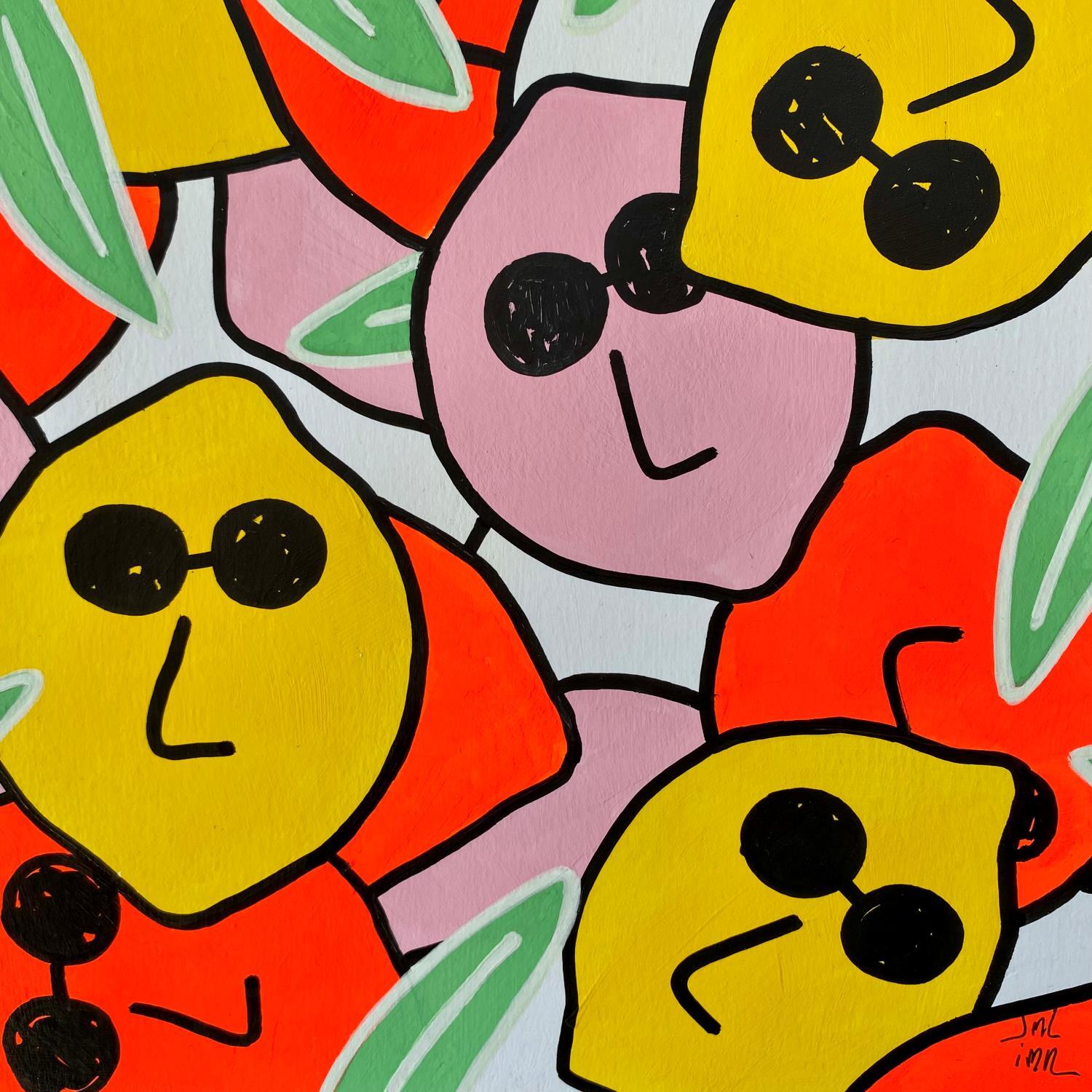 Julian's vocation was born from a graphic designer and artist father. As a teenager, he became interested in computer graphics and designed his first visuals alone on Illustrator. Without stopping drawing, he travels to New York and Valencia, develops a passion for music and basketball and starts a family. In 2020, in search of authenticity and meaning in an austere and digitalized world, he started painting. A tangy memory of his childhood, the artist makes lemons the emblem of his optimism. Online or in private collections, Julian exhibits all over the world and militates for humanitarian causes.