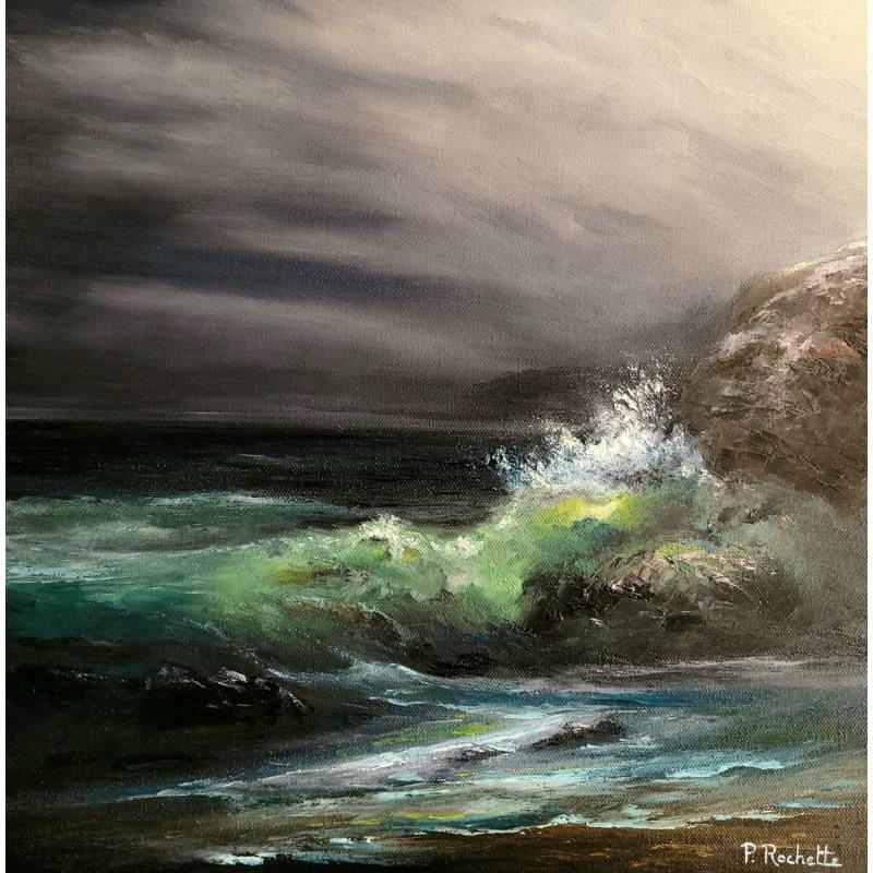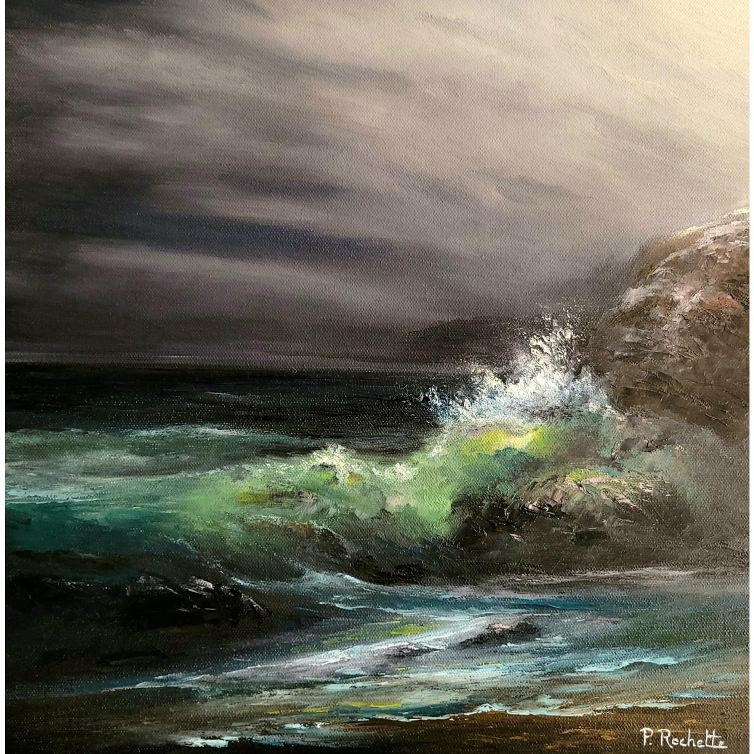 This unique and original contemporary artwork "Clair de lune" on the subject of Marine has been created by the contemporary artist Rochette Patrice.
