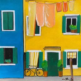This unique and original contemporary artwork "Le Vélo" on the subject of Urban has been created by the contemporary artist Du Planty Anne.