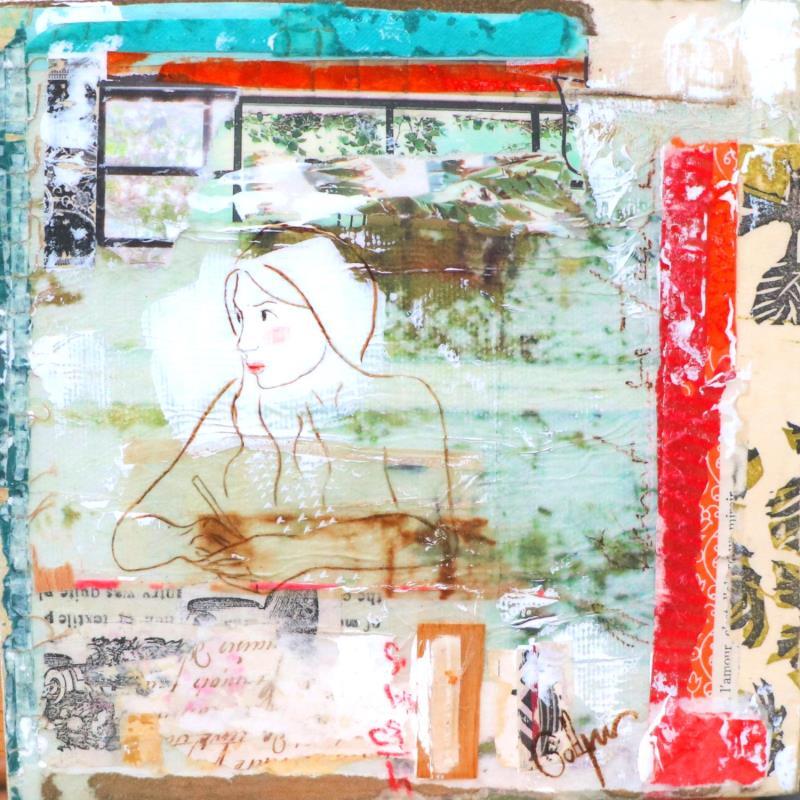 Sablyne's mixed media: ink, acrylic paint, dry pastel, collage art, photography, upcycling, paper art.