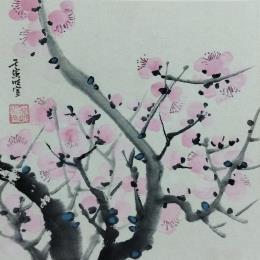 This unique and original contemporary artwork "Pink blossom" on the subject of Nature has been created by the contemporary artist Du Mingxuan.