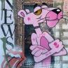 This unique and original contemporary artwork "new pink panther" on the subject of Pop icons has been created by the contemporary artist Marie G. .