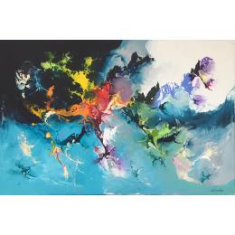 The artist used Acrylic medium on Canvas to create this Abstract, Large size painting.