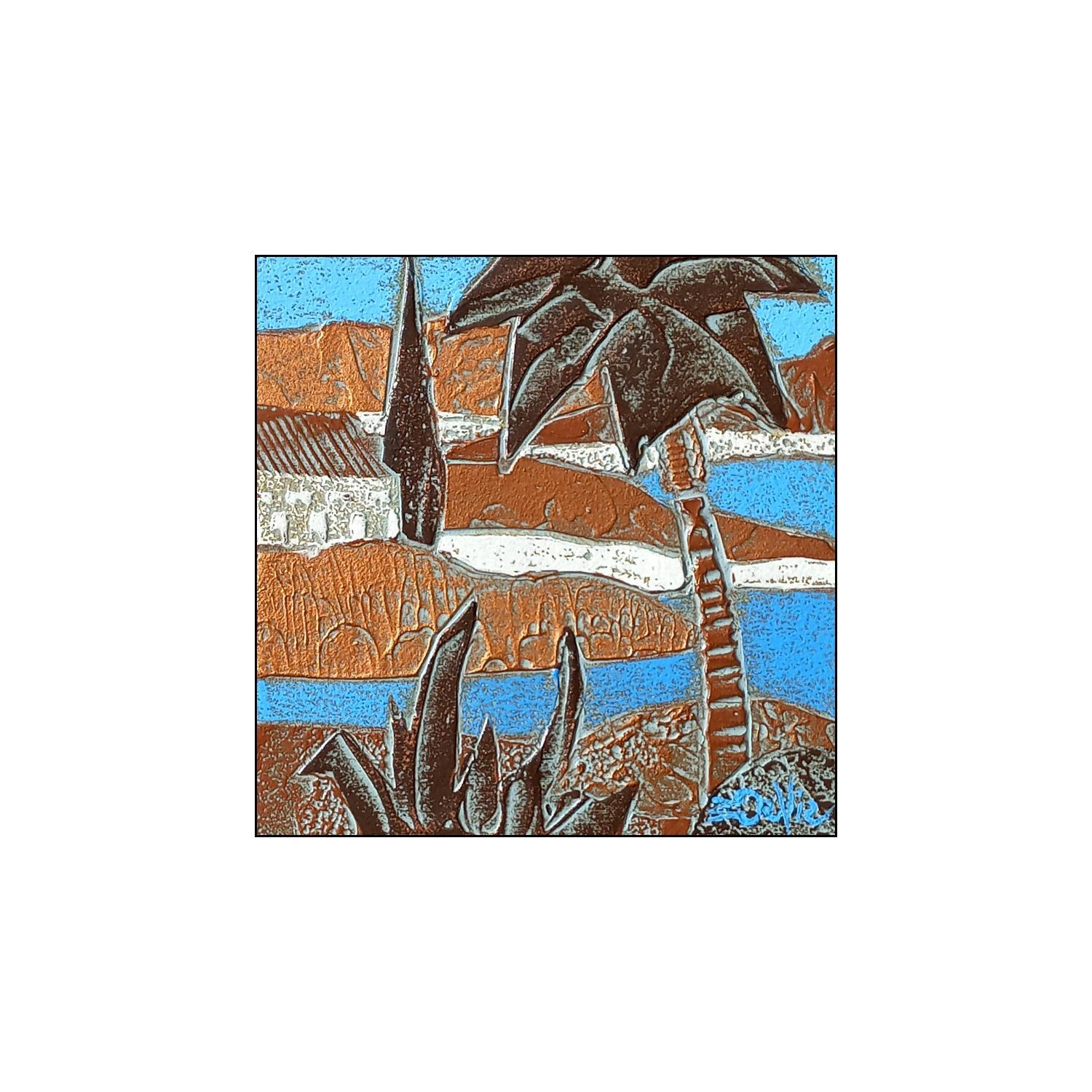 This unique and original contemporary artwork " 702. RIVAGE Cuivre et bleu" on the subject of Landscapes has been created by the contemporary artist Devie Bernard .
