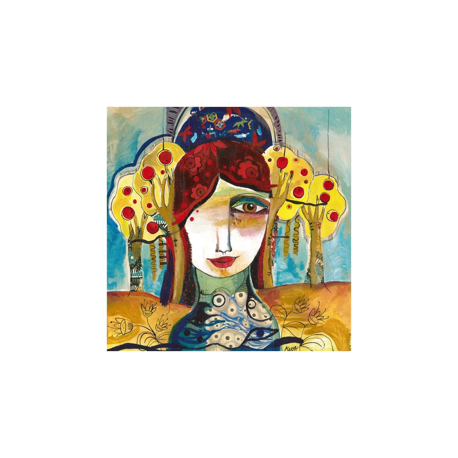 The contemporary artwork Le fil des ambres is a modern painting from the artist Laure Ketfa. This is a contemporary painting, unique and originale, Figurative style.