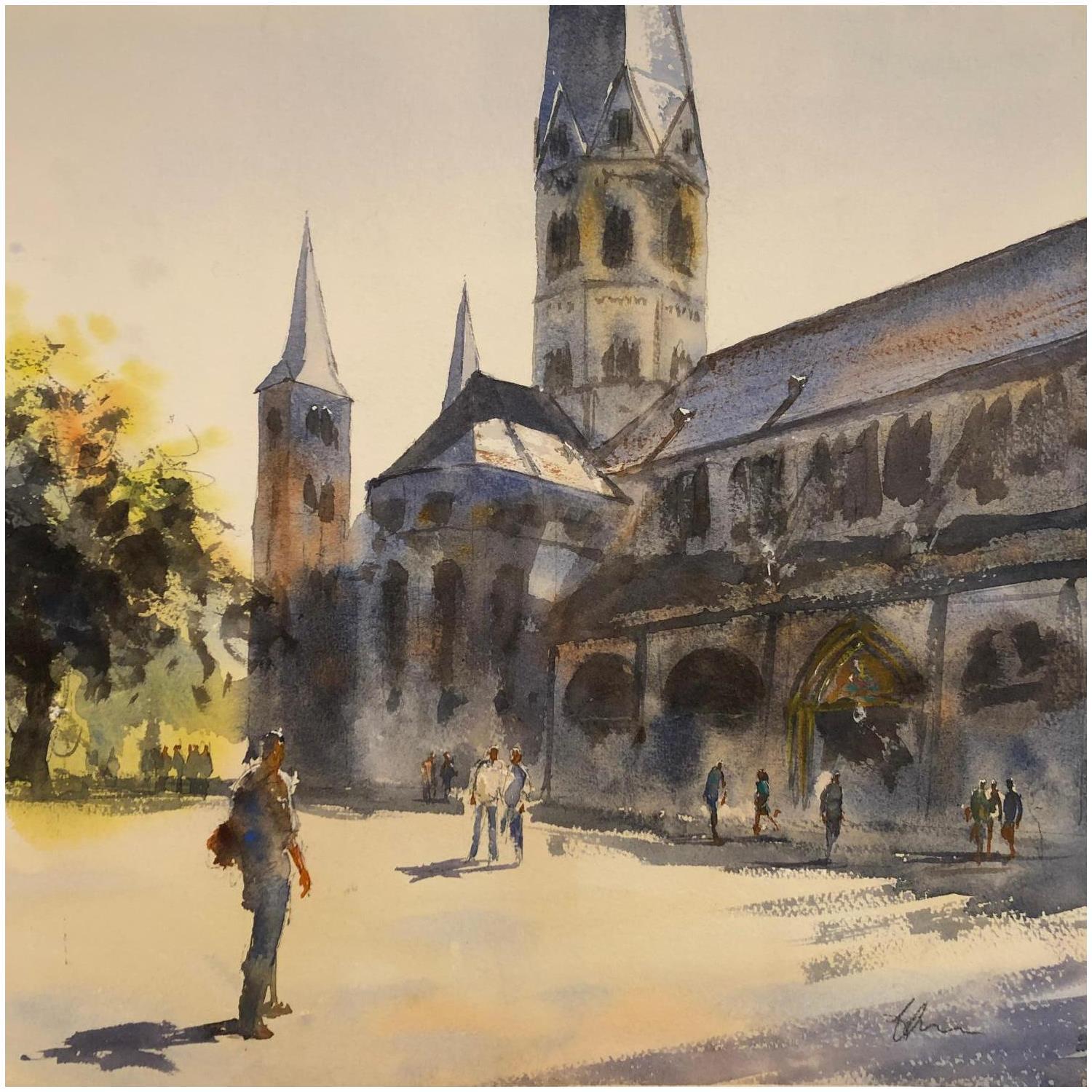 This unique and original contemporary artwork "Bonner Münstermann" on the subjects of Landscapes, Urban has been created by the contemporary artist Jones Henry.