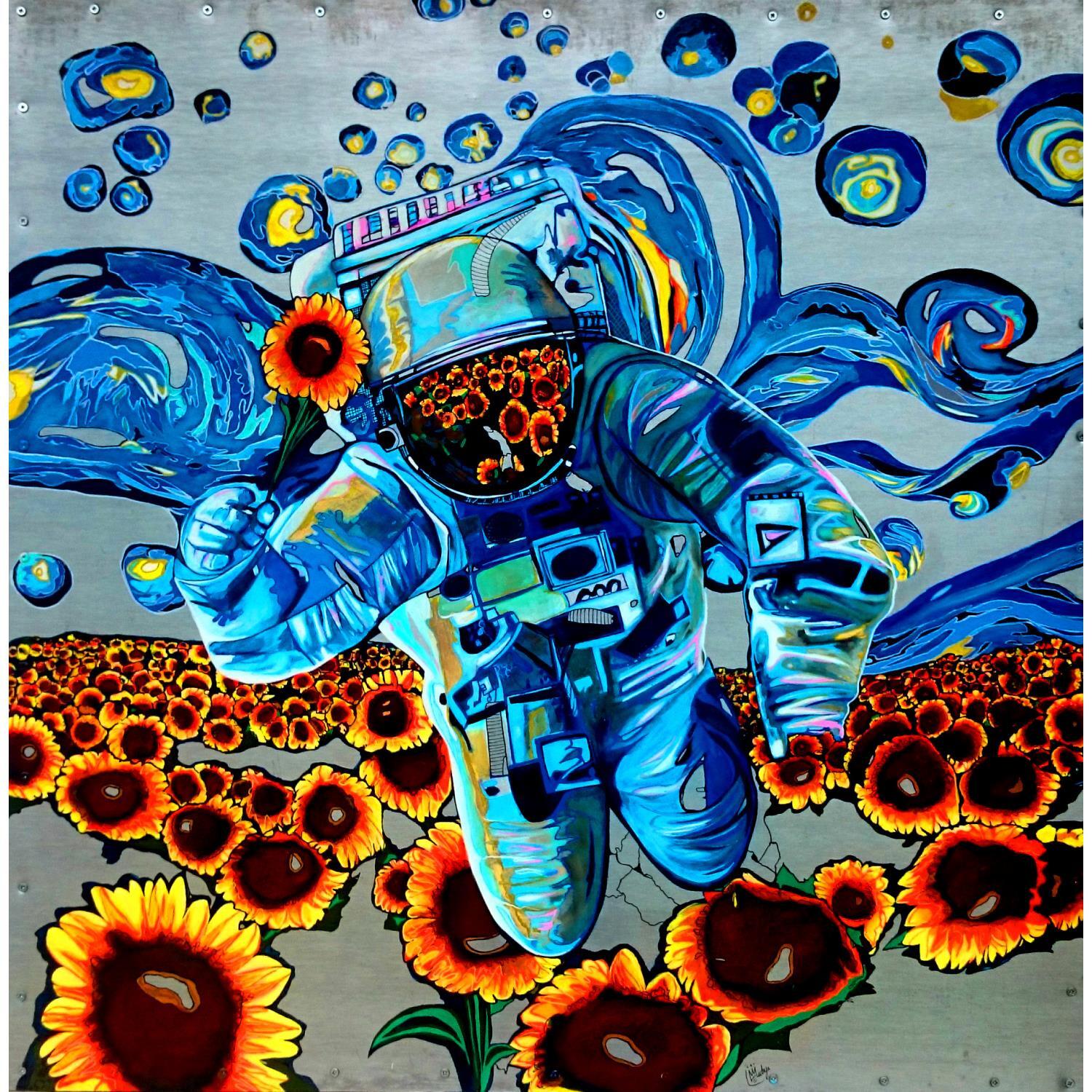 This unique and original contemporary artwork "Planète Van Gogh V2" on the subject of Pop icons has been created by the contemporary artist Medeya Lemdiya.
