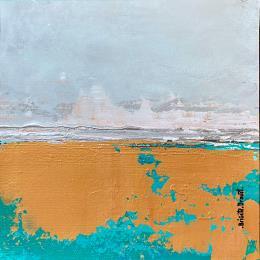 A passionate and hard worker, she draws us into a mineral and raw world through her mixtures of pigments. Her metallic colors, golden, copper, rusty, are organized in a cracked and uneven rendering, filled with delicacy, poetry and serenity.