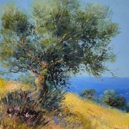 This unique and original contemporary artwork "Oliviers avec les hauteurs de Paros" has been created by the contemporary artist Sannier Daniel.