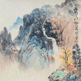 This unique and original contemporary artwork "Village Deep Forest" on the subject of Landscapes has been created by the contemporary artist Yu Huan Huan.