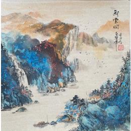 This unique and original contemporary artwork "Colorfull clouds" on the subject of Landscapes has been created by the contemporary artist Yu Huan Huan.