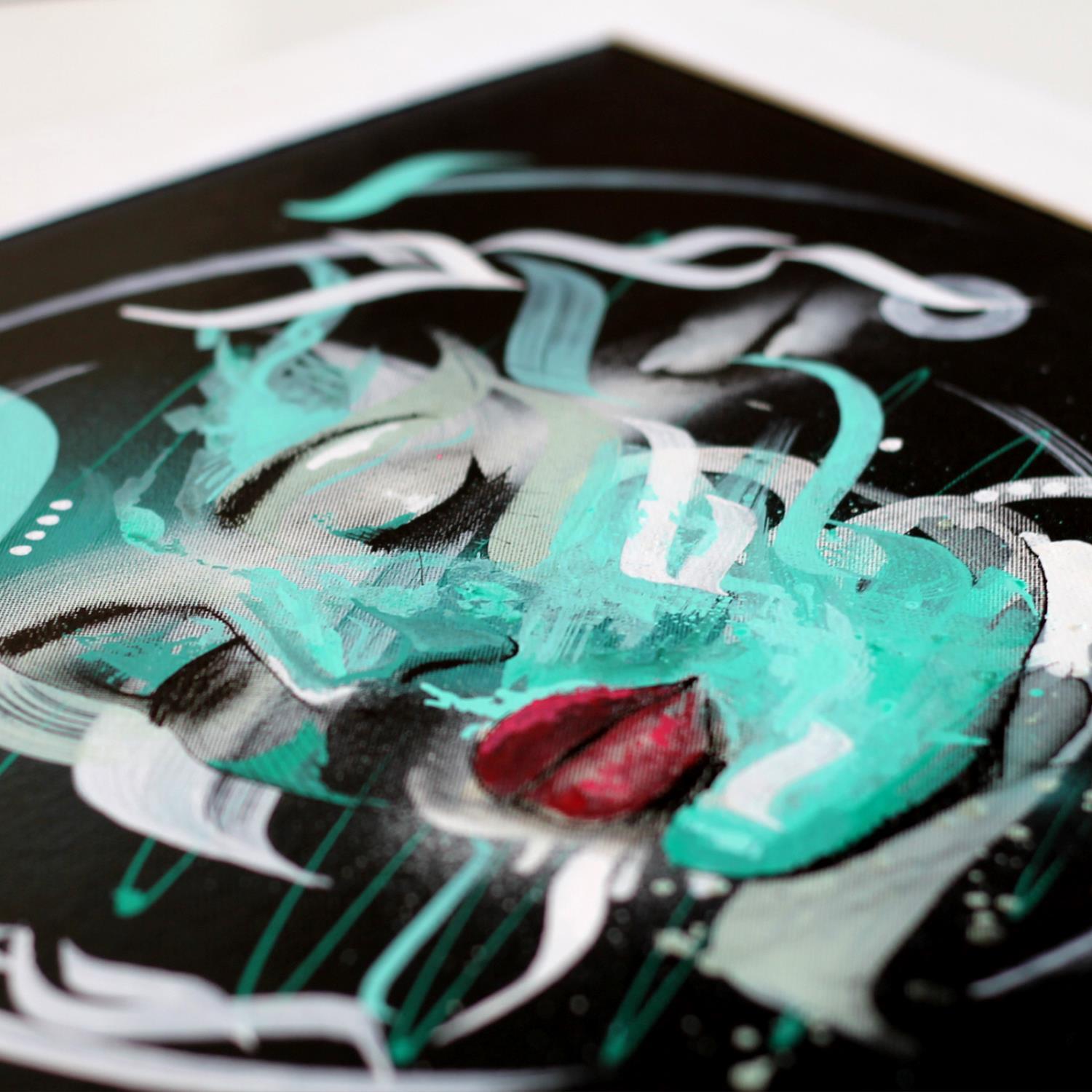 Pintura Emeraude calligraphy girl por Maderno | Pintura Street art Portrait