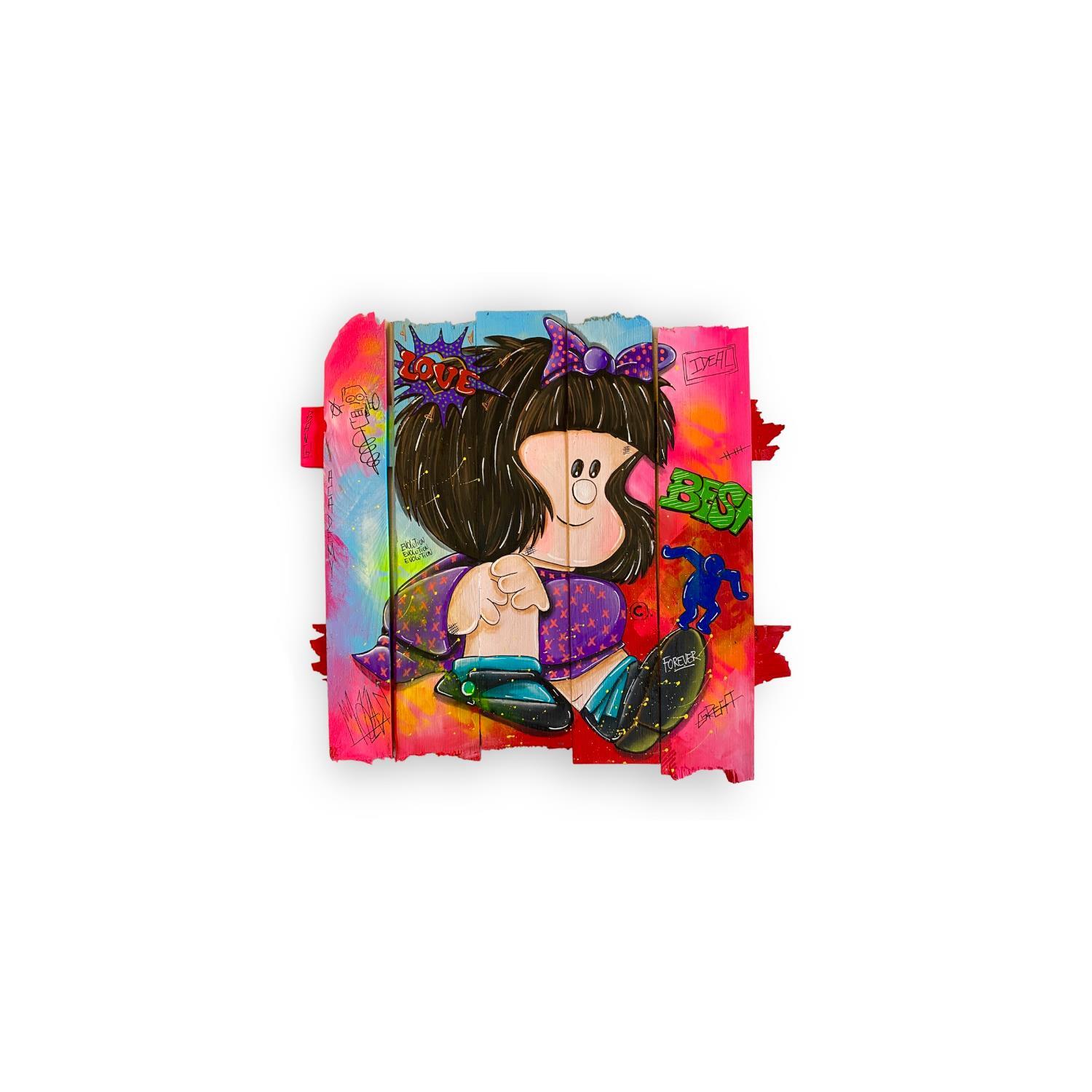 This unique and original contemporary artwork "Mafalda" on the subject of Pop icons has been created by the contemporary artist Molla Nathalie .