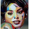 This unique and original contemporary artwork "Sophia Loren" on the subjects of Pop icons, Portrait has been created by the contemporary artist Medeya Lemdiya.