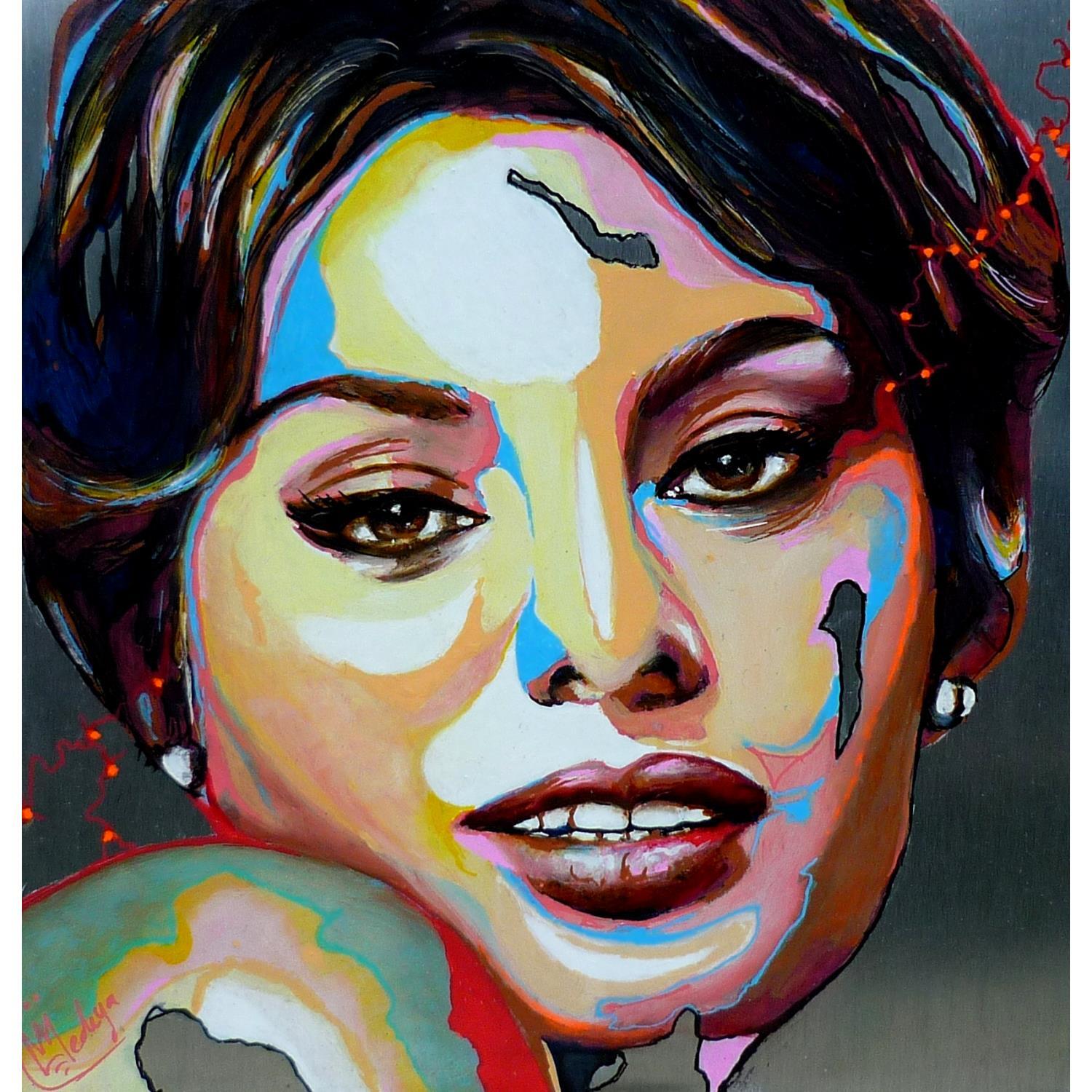 Pintura Sophia Loren por Medeya Lemdiya | Pintura Pop-art Portrait Pop icons Metal