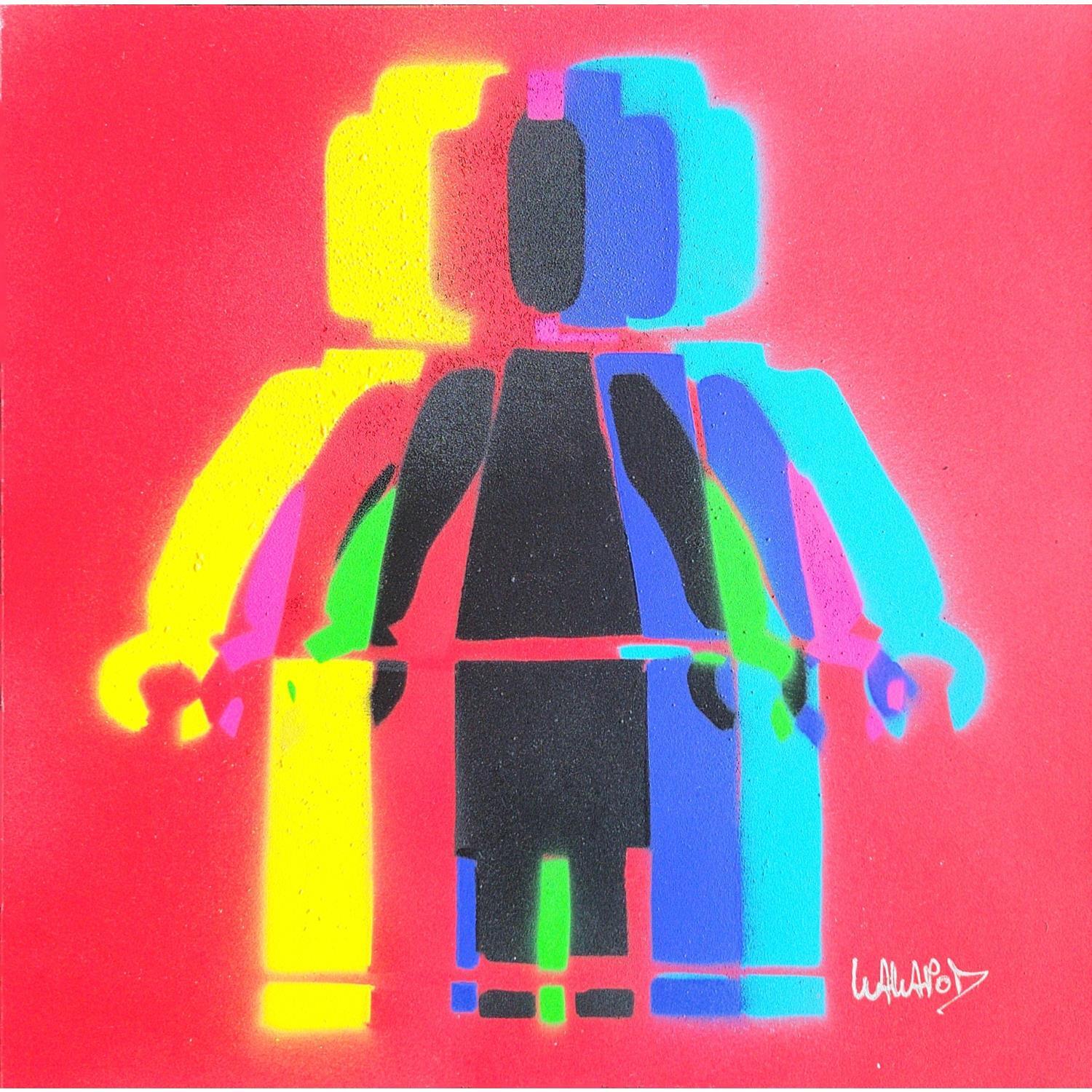 This unique and original contemporary artwork "Multi Lego Rouge " on the subject of Pop icons has been created by the contemporary artist Wawapod.