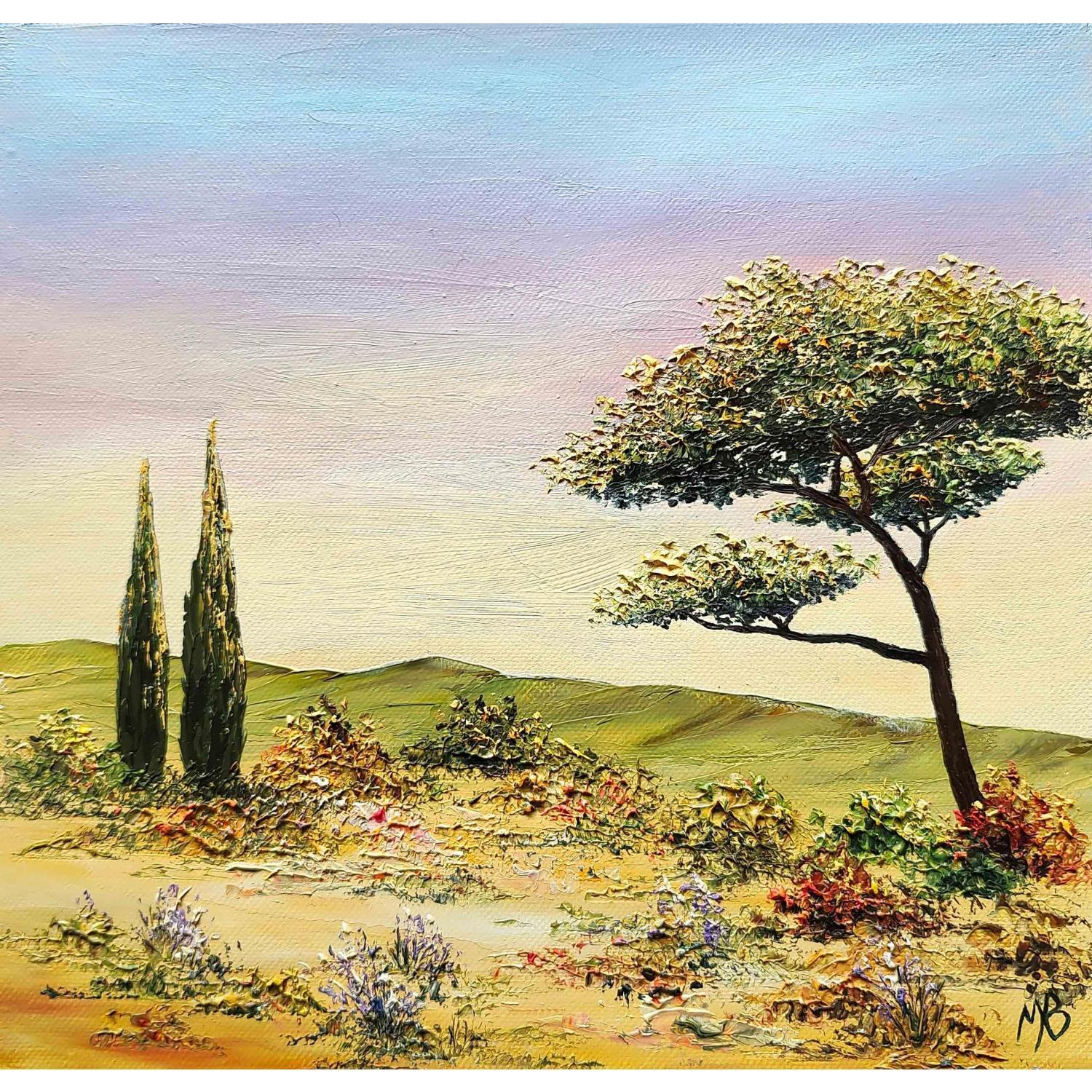 This unique and original contemporary artwork "Un après-midi en Provence " on the subject of Landscapes has been created by the contemporary artist Blandin Magali.