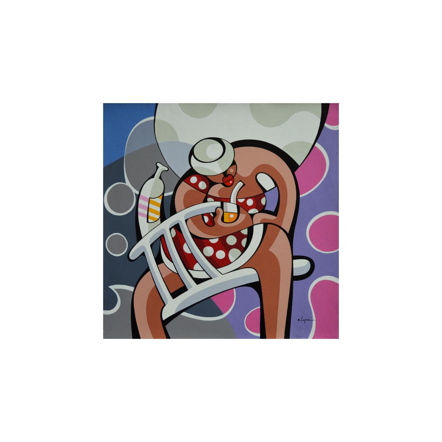 Born in 1964, Alfredo Lopez is a Bolivian-born artist who grew up in Spain before moving to Paris. Today, he lives and works near Chartres. His artistic career began in carefree times, with a vocation for freedom and sincerity. After working in advertising for fifteen years, he devoted himself fully to painting. His works, characterized by vivid colors and central characters, are narratives of everyday life, translating his neo-punk and benevolent sensibility.