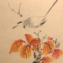 This unique and original contemporary artwork "Autumn taste " on the subject of Animals has been created by the contemporary artist Yu Huan Huan.