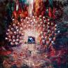 The concert with pianist is a work that oscillates between abstraction in the periphery and naive art in the center and the representation of the instrumentalists. The motif is painted with a knife and oil and plays on a harmony of warm colors (shades of red, orange) and metallic (gold, copper, and silver...). The square heads of the characters are inspired by the series "Parc des Princes" by Nicolas de Staël. The staging highlights the central pianist and plays on the circularity (the formation) and verticality (the background). The conductor, isolated and in a masterly posture, concludes the lower part of the work. The ensemble presents a tone called flamboyant or baroque... according to the sensibilities