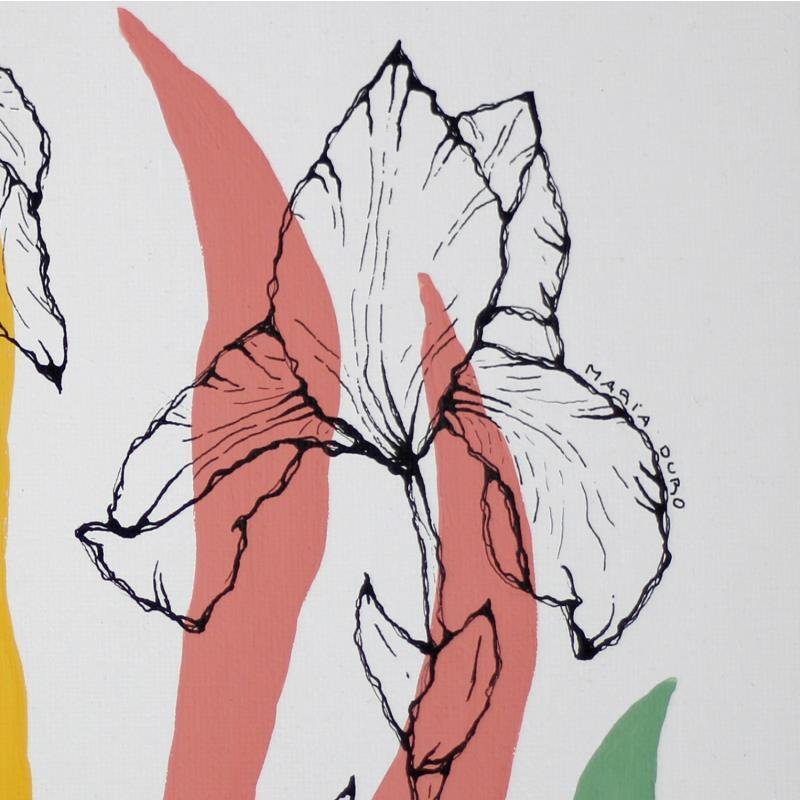 This unique and original contemporary artwork "Iris in the garden" was created by contemporary artist Maria Duro.