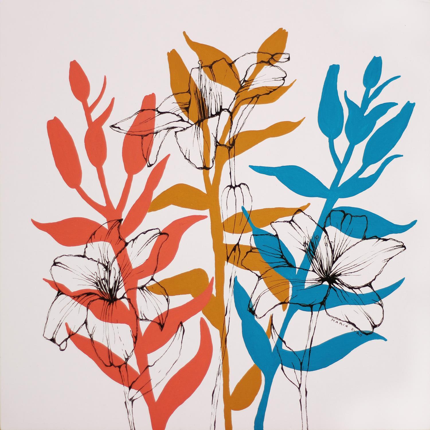 This unique and original contemporary artwork "Lilies in the Fields" was created by contemporary artist Maria Duro.