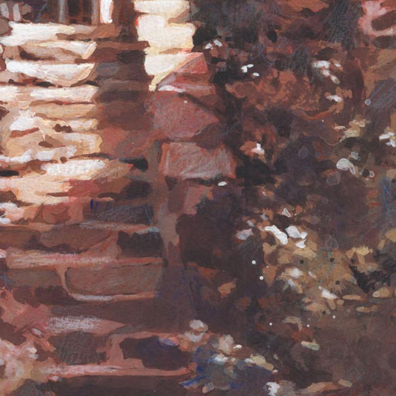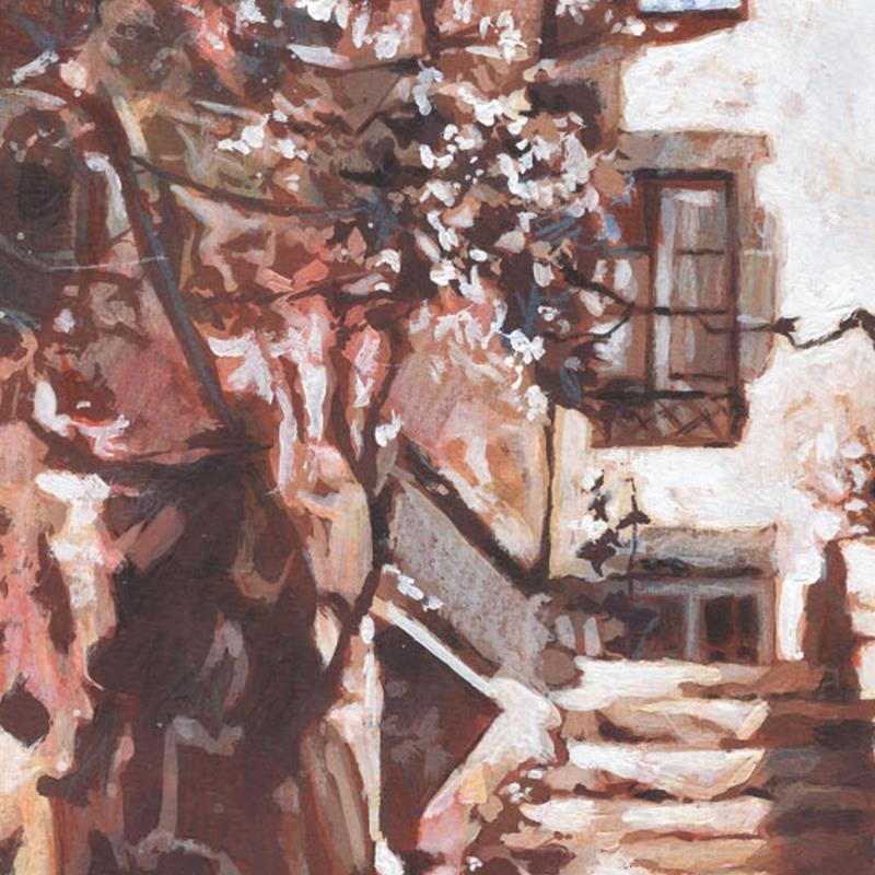 This unique and original contemporary artwork "L'escalier d'à côté" on the subjects of Urban, Architecture has been created by the contemporary artist Gemini. H .